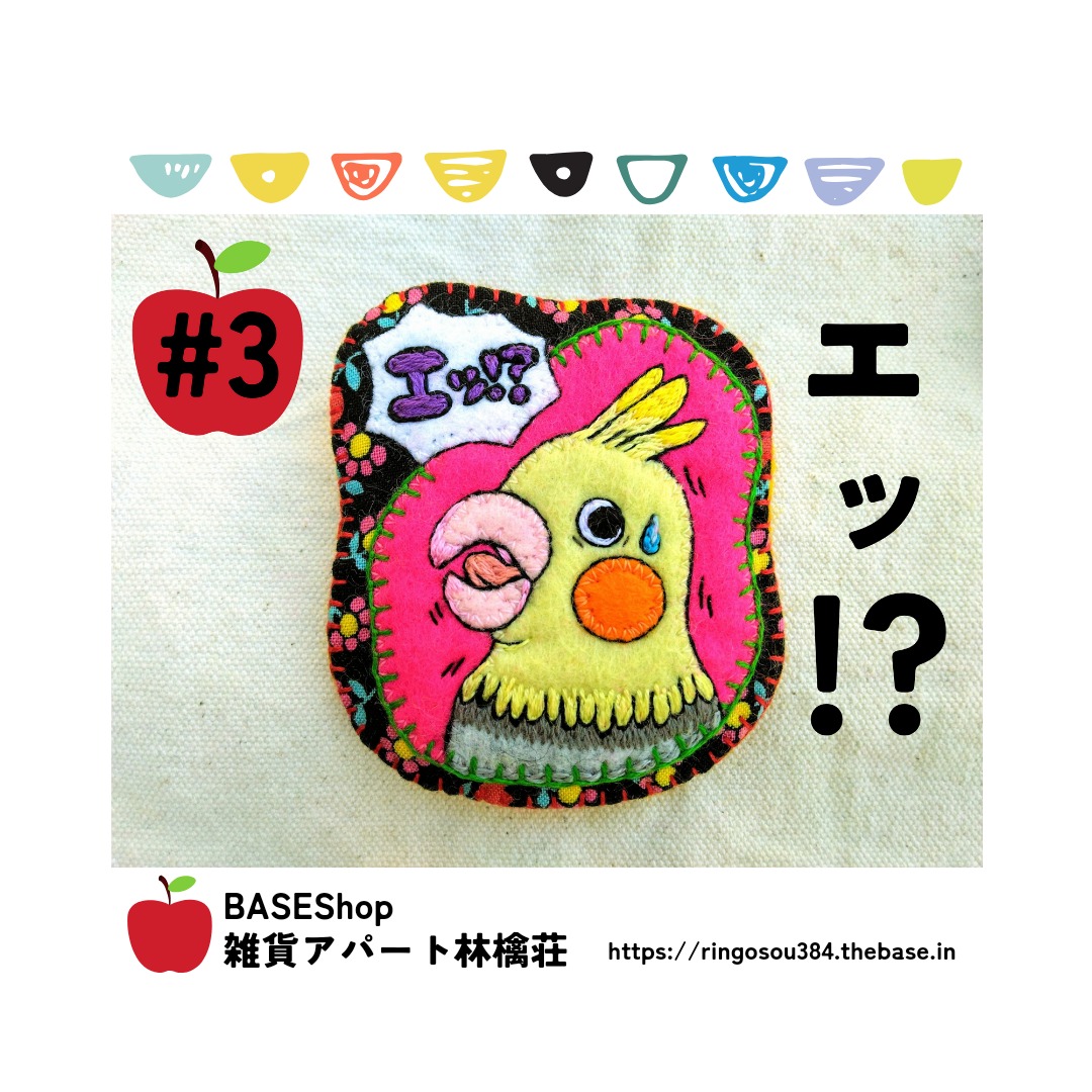 ※しりとりアップリケ刺繍シリーズは、画像を使ってプリントグッズを作ってみようと企み中です。(あくまでも企み段階)よって今シリーズの作品はイラストでいう所の「原画」に当たります。