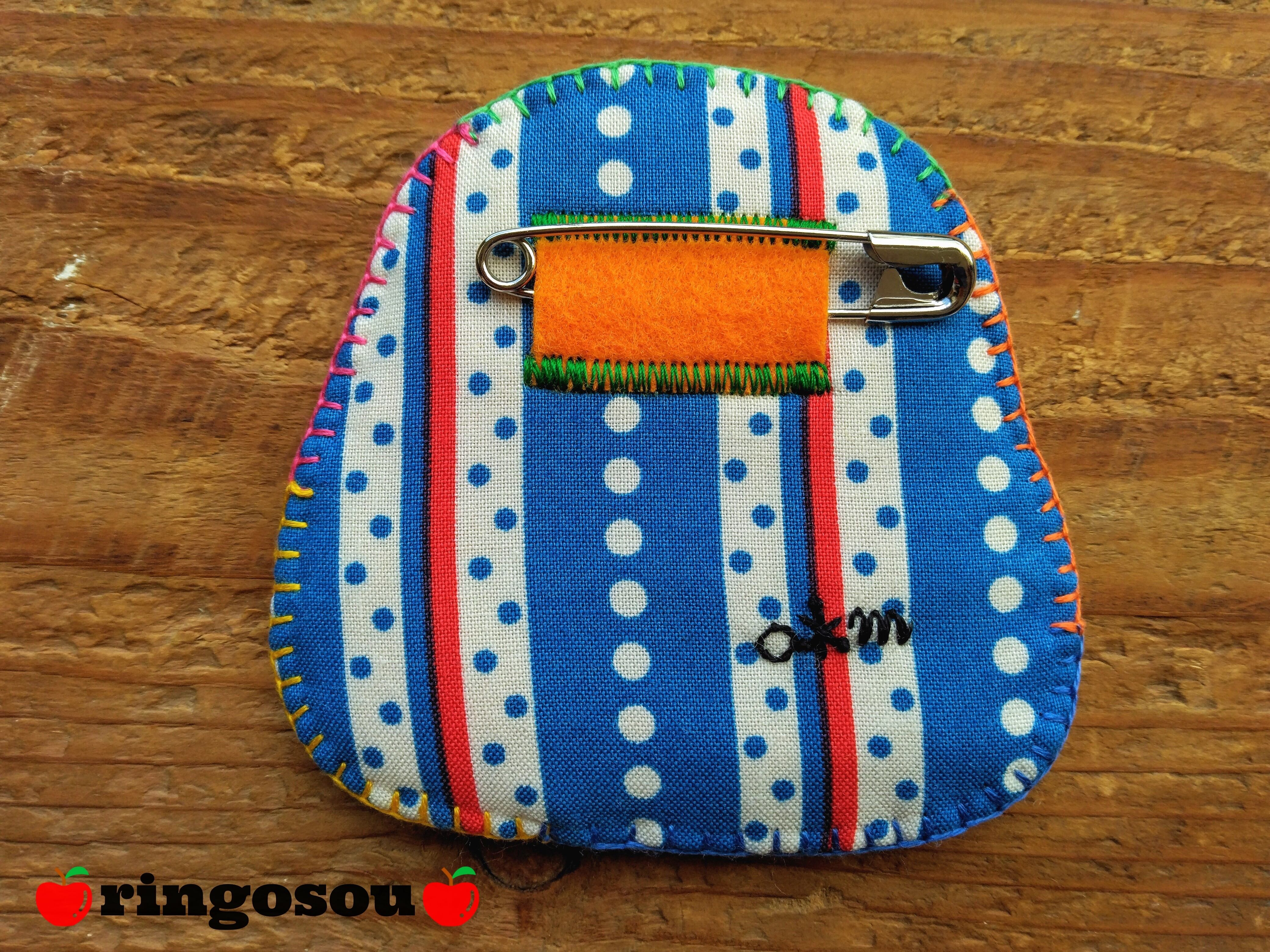 しりとりでつながるアップリケ刺繍ブローチシリーズ、第4作目です。♬