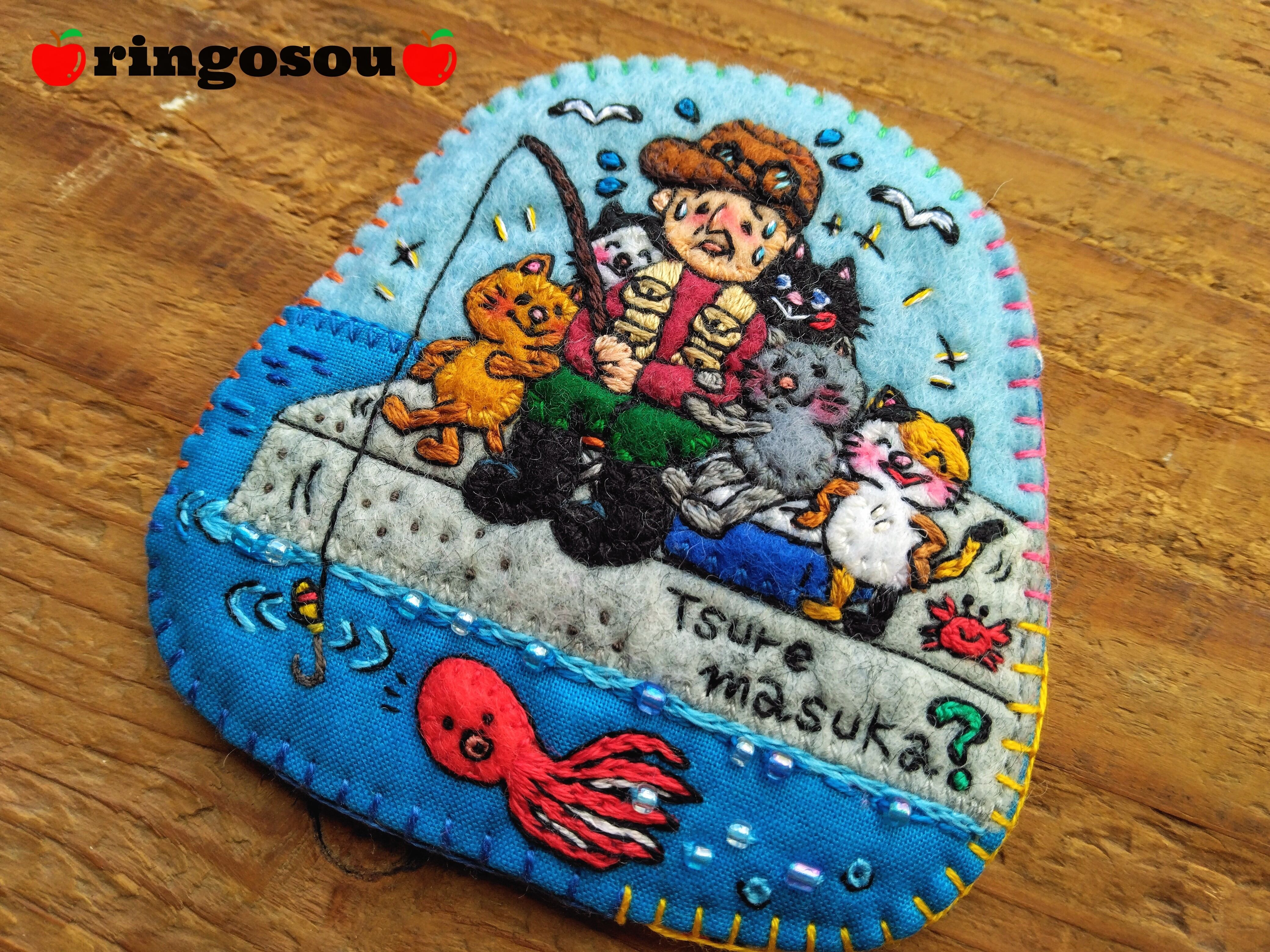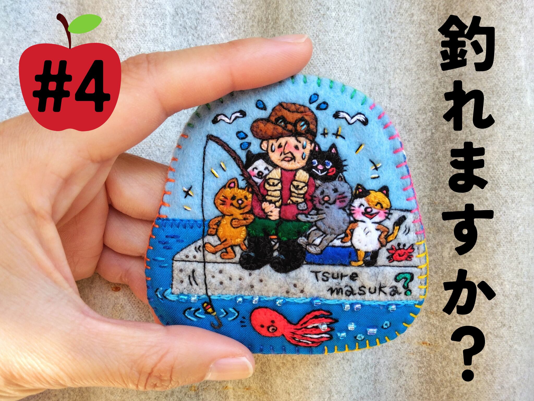 #4【釣れますか?】しりとりアップリケ刺繍ブローチ