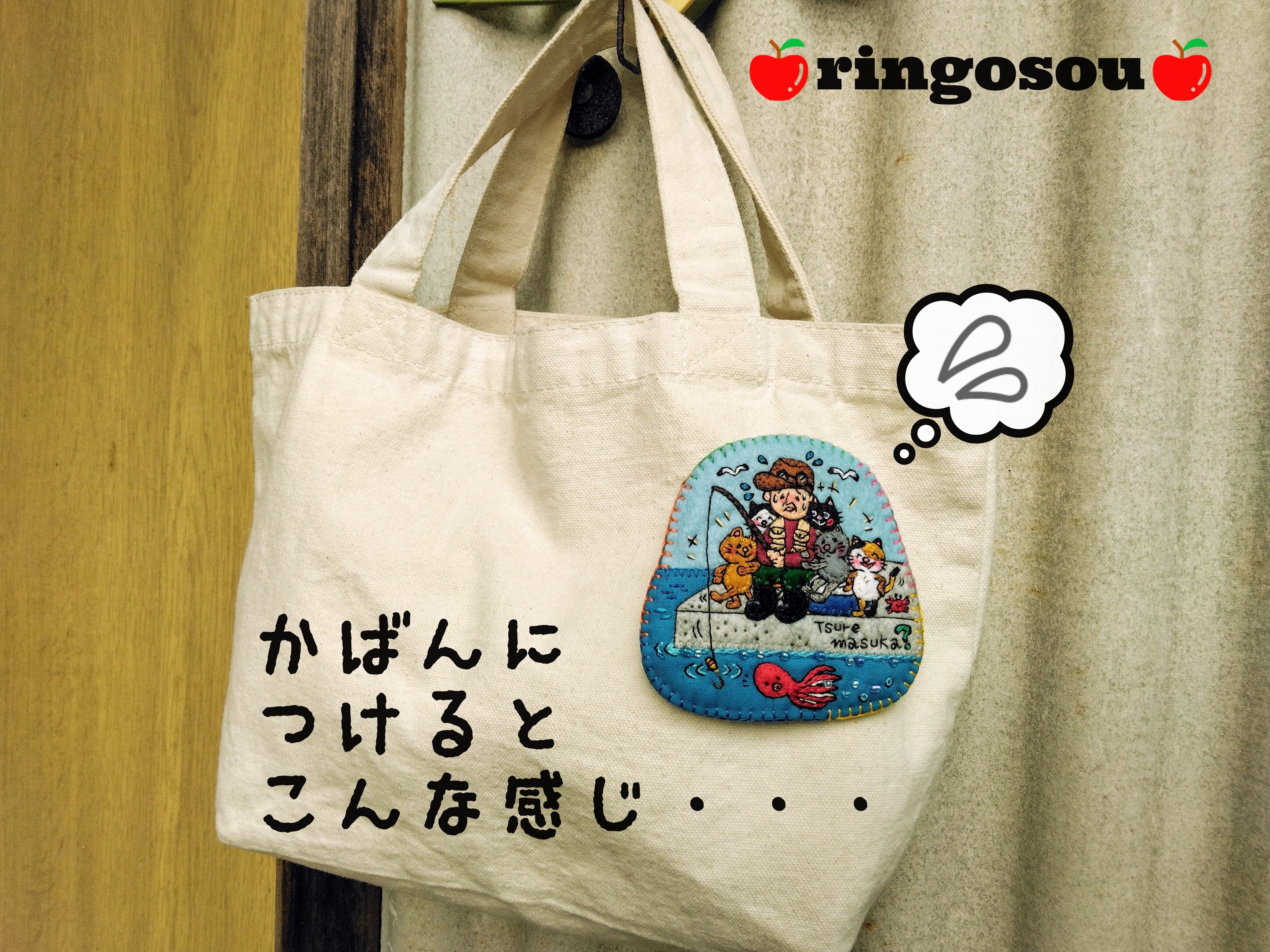 乙女雑貨マリアンヌのしりとりアップリケ刺繍ブローチ#4【釣れますか❓】です。