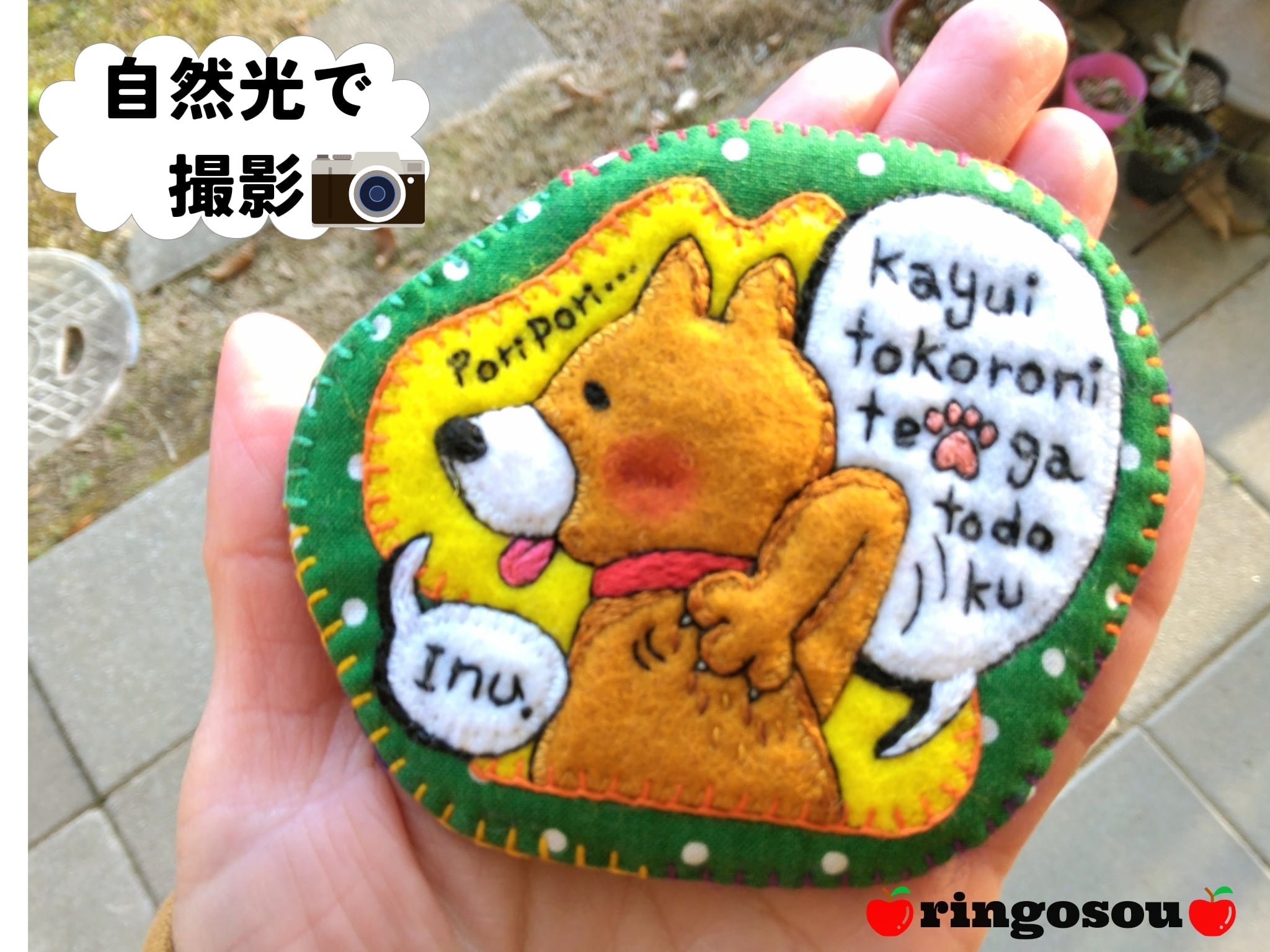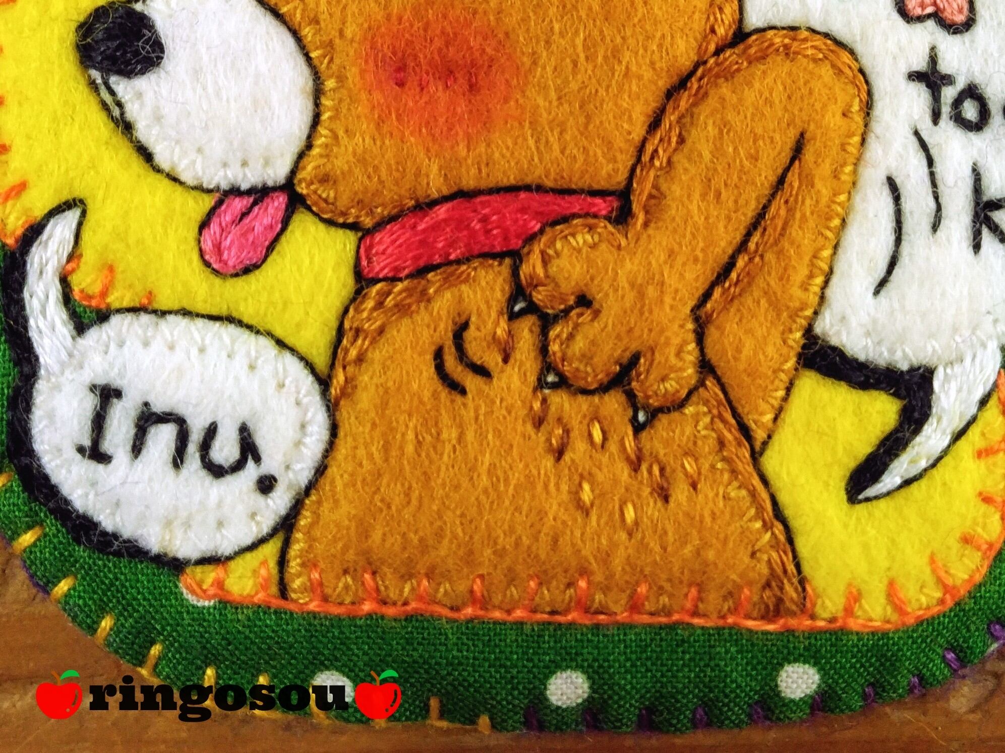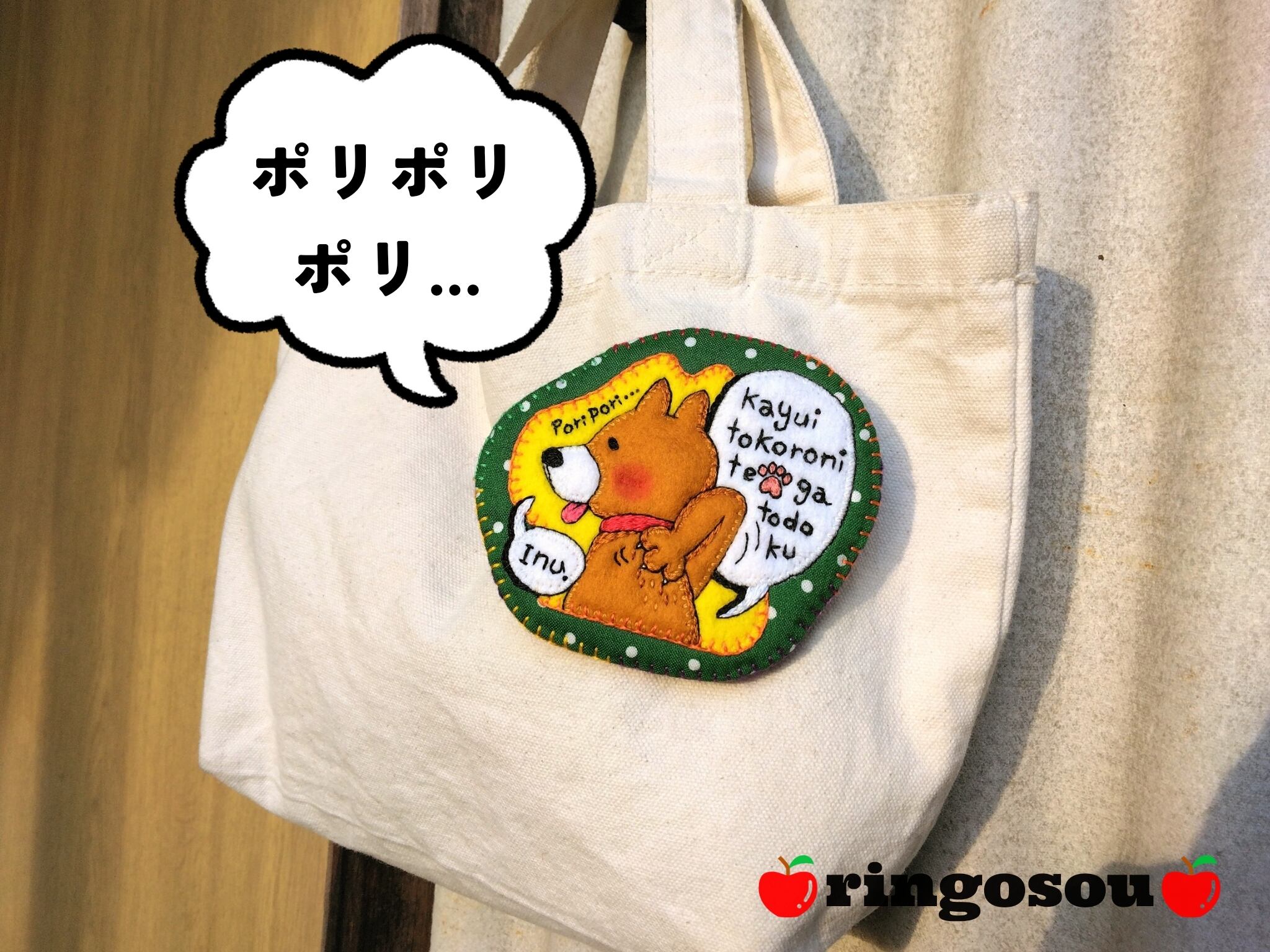 #5【痒い所に手が届く犬】しりとりアップリ刺繍ブローチ