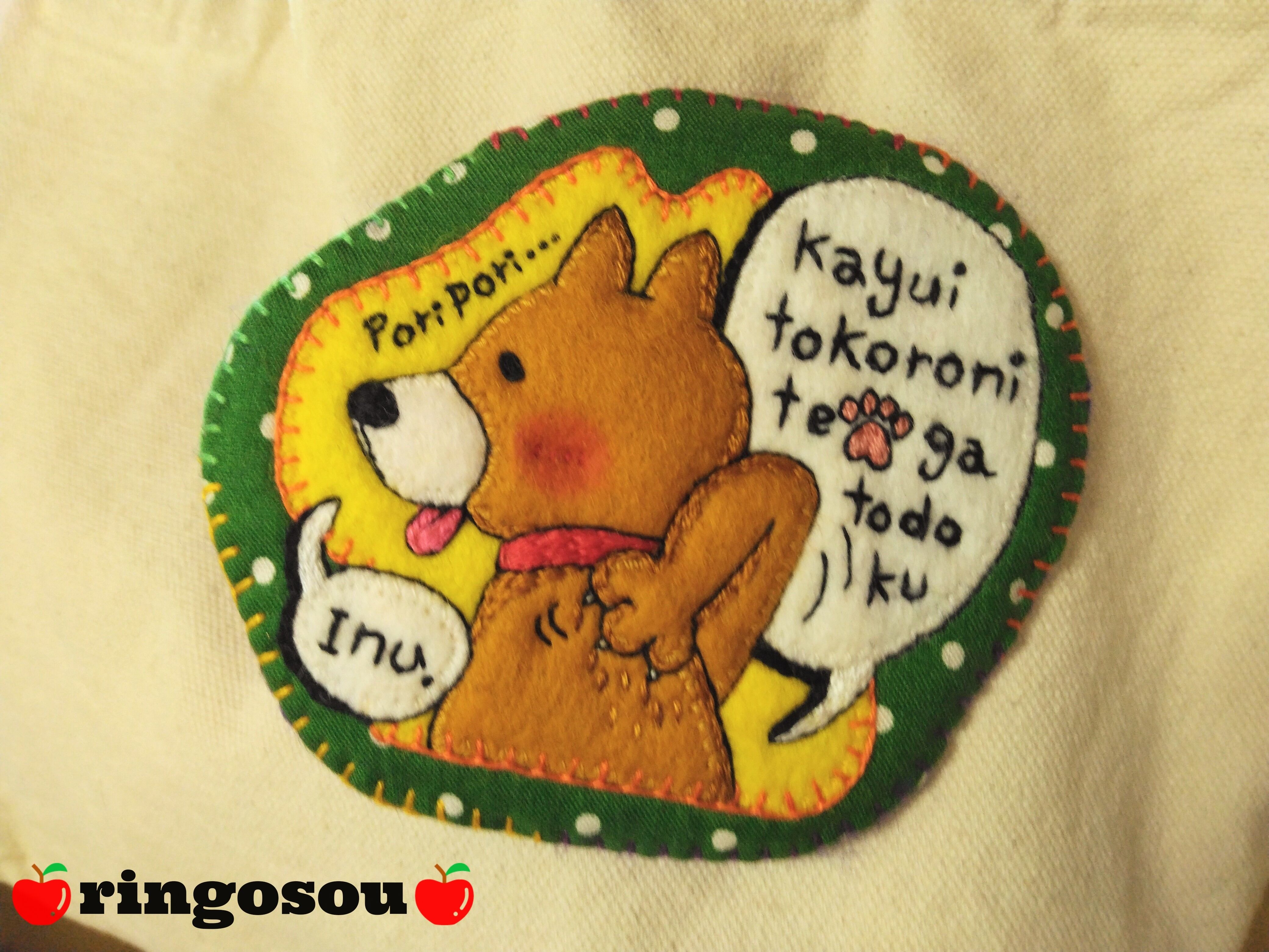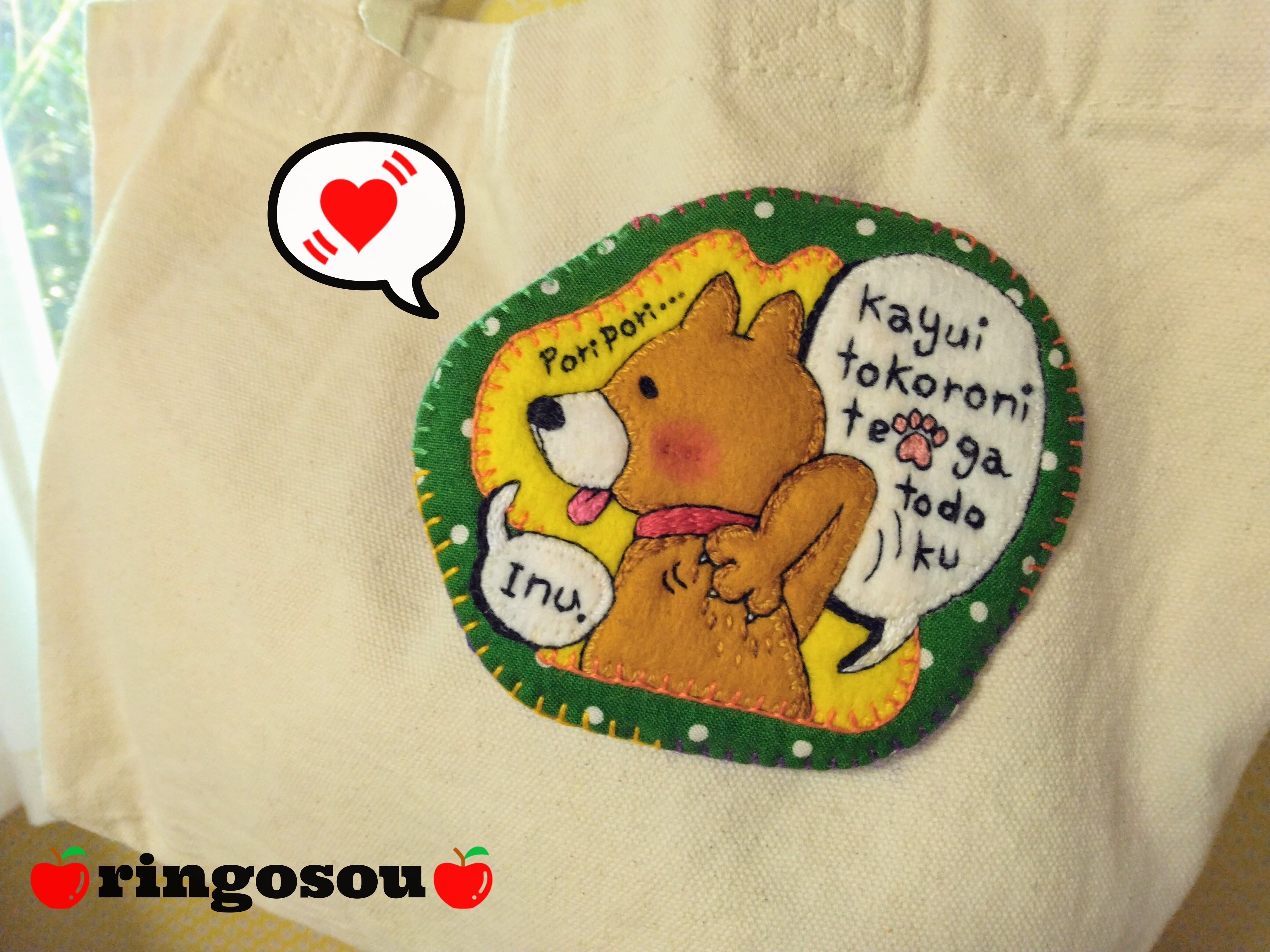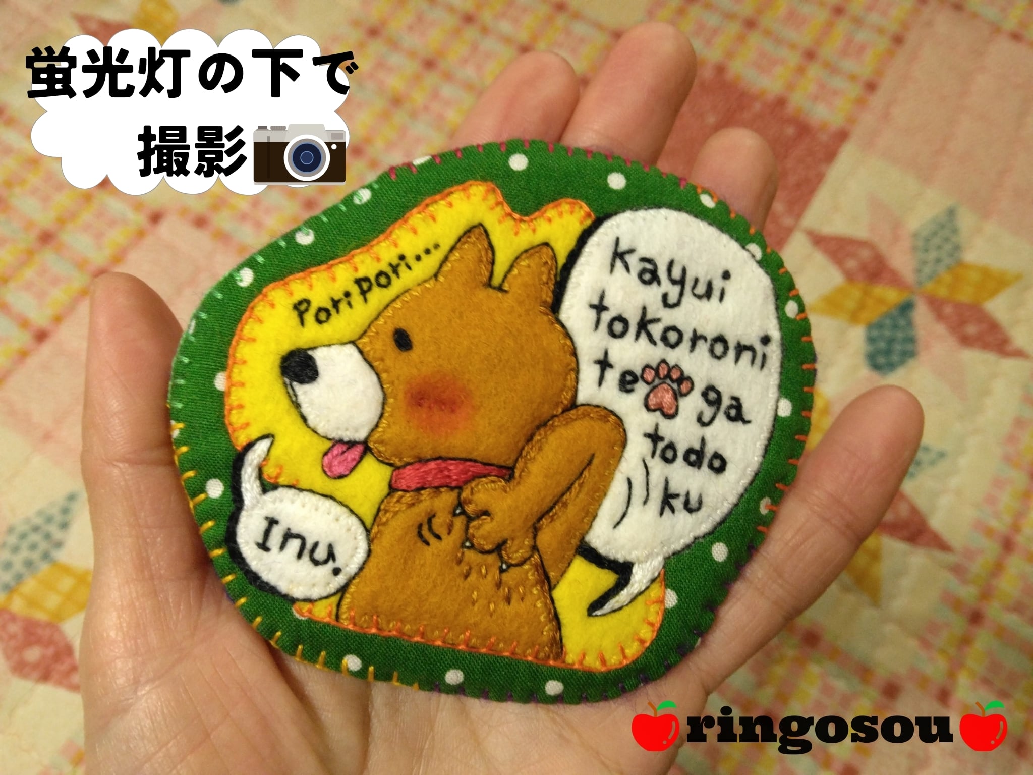 #5【痒い所に手が届く犬】しりとりアップリ刺繍ブローチ