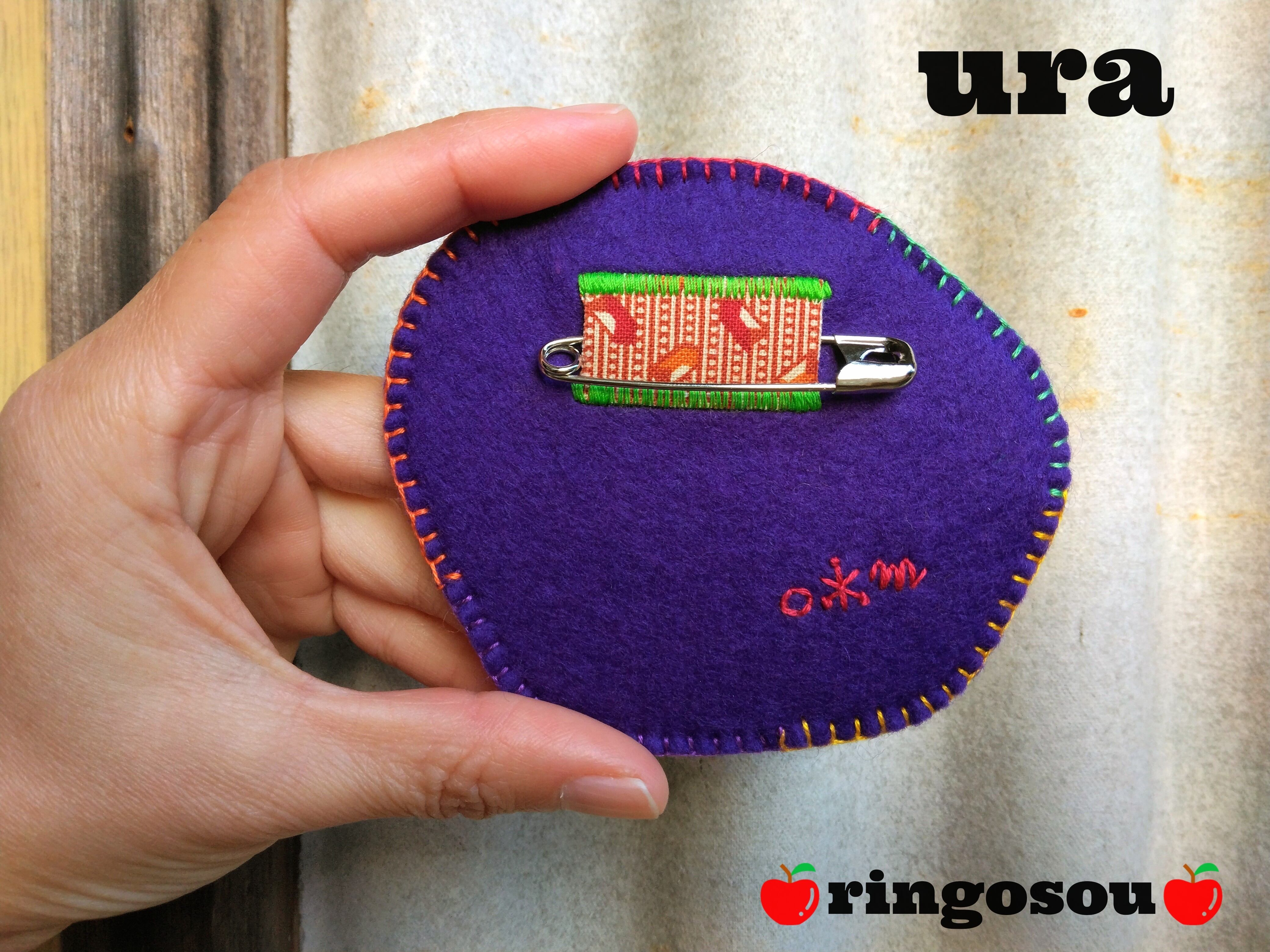 しりとりでつながるアップリケ刺繍ブローチシリーズ、第5作目です。♬